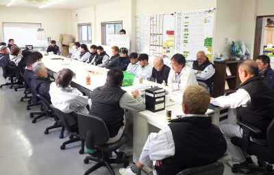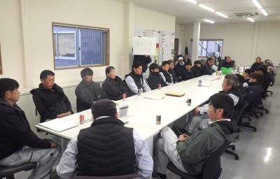 安全に工事をする為、毎月実施! 毎月第一月曜日に会議を開き、ヒヤリハットや技術内容等について話し合い、進歩に繋げております。 -
