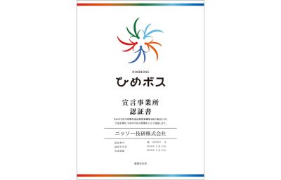 このたびニッソー技研は、愛媛県が推進する「ひめボス宣言事業所」の認証事業所となりました。 ひめボスは、誰もが安心して働き、能力を発揮できる職場づくりや女性活躍の推進、働き方改革に積極的に ... -
