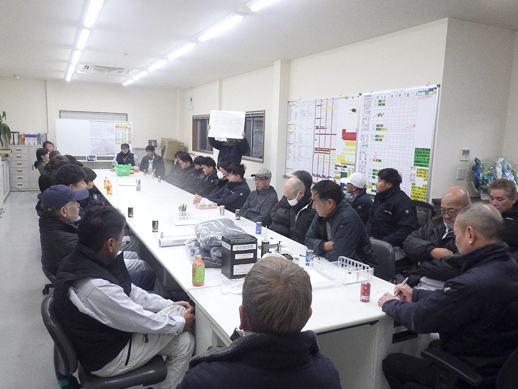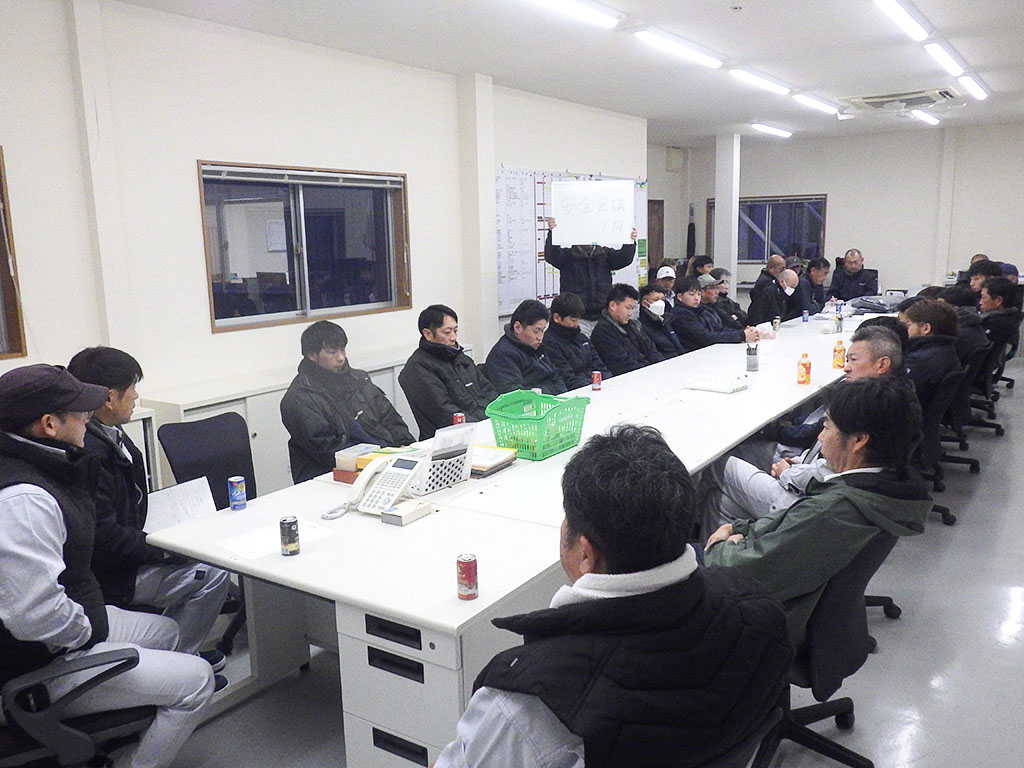 安全に工事をする為、毎月実施! 毎月第一月曜日に会議を開き、ヒヤリハットや技術内容等について話し合い、進歩に繋げております。