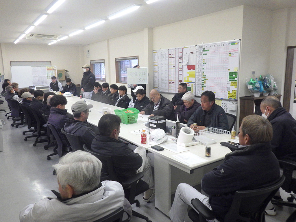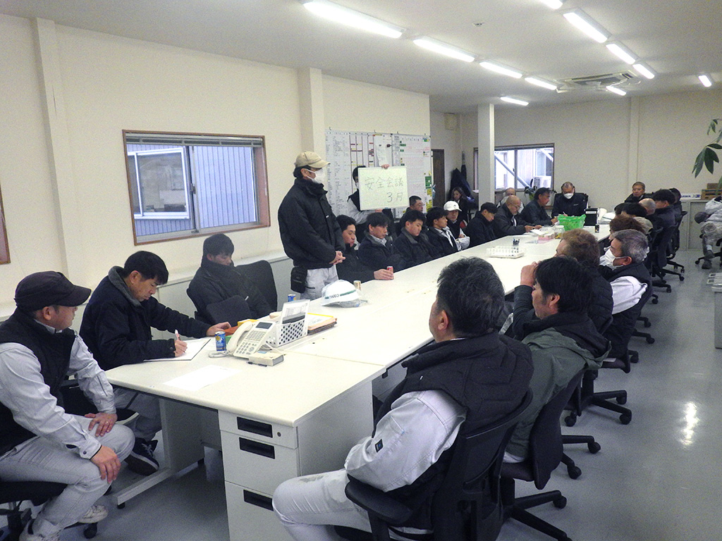 安全に工事をする為、毎月実施! 毎月第一月曜日に会議を開き、ヒヤリハットや技術内容等について話し合い、進歩に繋げております。