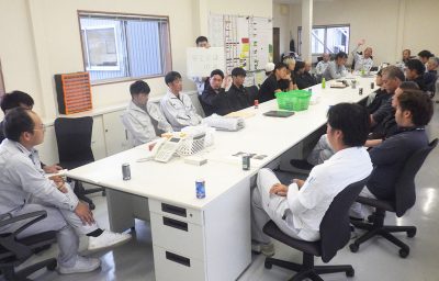 安全に工事をする為、毎月実施! 毎月第一月曜日に会議を開き、ヒヤリハットや技術内容等について話し合い、進歩に繋げております。